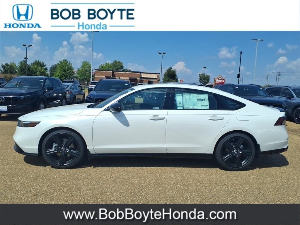 2025 Honda Accord Hybrid Sport-L Platinum White Pearl FWD 2.0L I4 DOHC 16V eCVT Bring Us All Offers On This Vehicle, Honda Dealer Serving Jackson MS, Financing Is Available For Everyone, 2.0L I4 DOHC 16V, 8 Speakers, Adaptive Cruise Control: Adaptive Cruise Control (ACC) with Low-Speed Follow, Alloy wheels, AM/FM radio, Apple CarPlay/Android Auto, Auto High-beam Headlights, Automatic temperature control, Blind Spot Information (BSI) System warning, Brake assist, Delay-off headlights, Dual front impact airbags, Dual front side impact airbags, Electronic Stability Control, Emergency communication system: HondaLink, Exterior Parking Camera Rear, Four wheel independent suspension, Front Bucket Seats, Front dual zone A/C, Fully automatic headlights, Heated Front Bucket Seats, Heated front seats, Illuminated entry, Knee airbag, Lane departure: Lane Keeping Assist System (LKAS) active, Leather Shift Knob, Leather steering wheel, Leather-Trimmed Seat Trim, Memory seat, Occupant sensing airbag, Overhead airbag, Panic alarm, Power driver seat, Power moonroof, Power passenger seat, Power steering, Power windows, Radio data system, Radio: 180-Watt Audio System, Rear side impact airbag, Remote keyless entry, Security system, Speed control, Speed-sensing steering, Speed-Sensitive Wipers, Steering wheel mounted audio controls, Traction control, Variably intermittent wipers, Wheels: 19" x 8.5J Matte Berlina Black. 46/41 City/Highway MPG