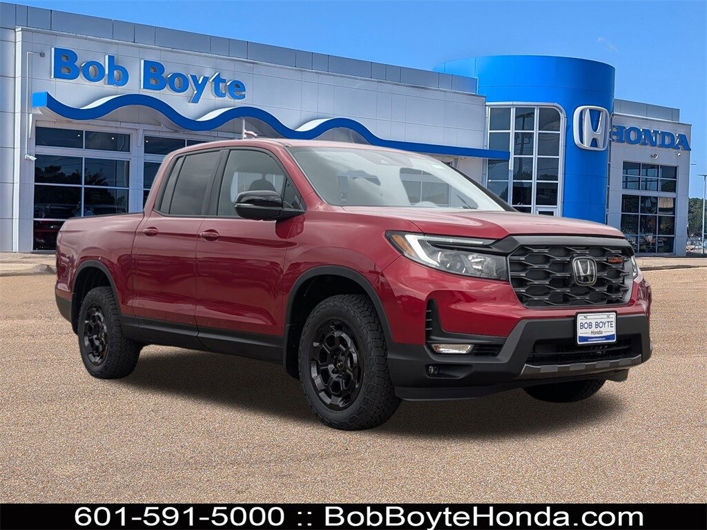 2025 Honda Ridgeline TrailSport+ Radiant Red Metallic II AWD 3.5L V6 SOHC i-VTEC 24V 9-Speed Automatic Honda Dealer Serving Jackson MS, Financing Is Available For Everyone, Black Leather.