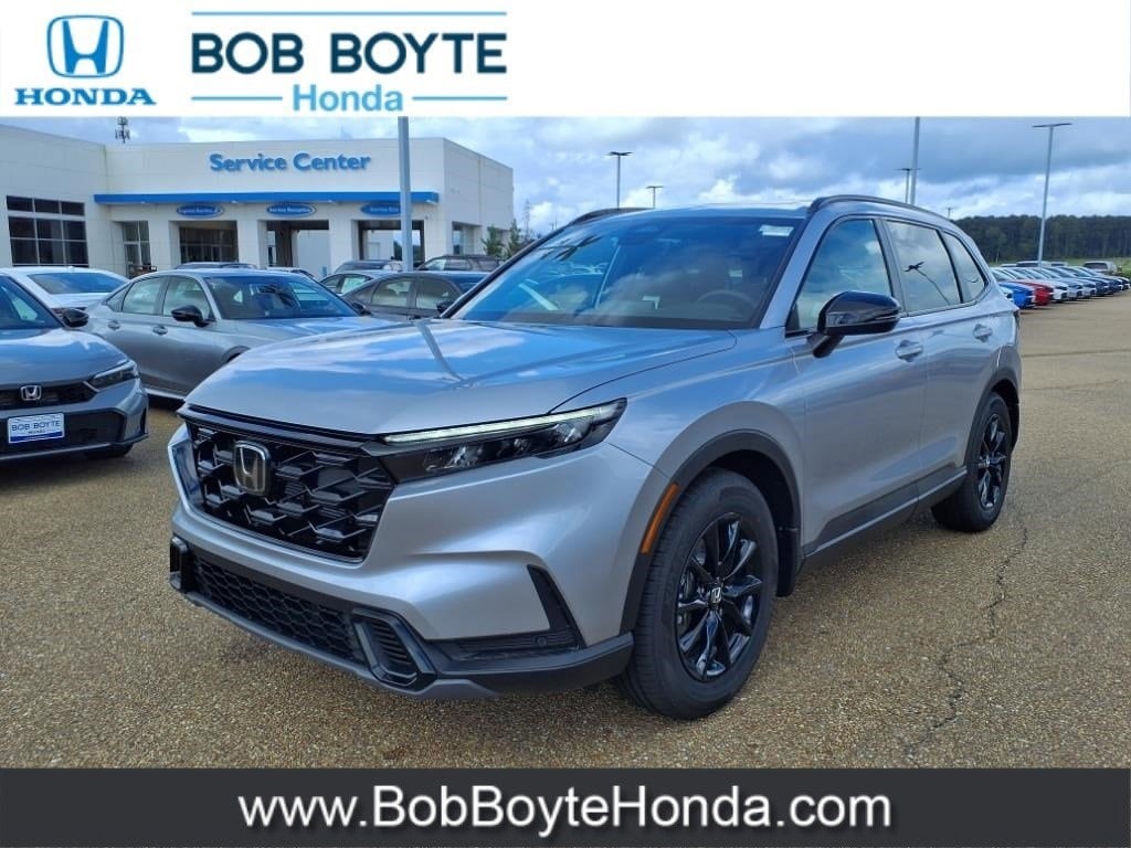 2026 Honda CR-V Hybrid Sport-L Solar Silver Metallic FWD 2.0L I4 DOHC 16V eCVT Bring Us All Offers On This Vehicle, Honda Dealer Serving Jackson MS, Financing Is Available For Everyone, 2.0L I4 DOHC 16V, 8 Speakers, Adaptive Cruise Control: Adaptive Cruise Control (ACC) with Low-Speed Follow, Alloy wheels, Apple CarPlay/Android Auto, Auto High-beam Headlights, Automatic temperature control, Blind Spot Information (BSI) System warning, Brake assist, Delay-off headlights, Electronic Stability Control, Exterior Parking Camera Rear, Four wheel independent suspension, Front Bucket Seats, Front dual zone A/C, Fully automatic headlights, Heated door mirrors, Heated Front Bucket Seats, Heated front seats, Illuminated entry, Leather Seat Trim, Leather Shift Knob, Leather steering wheel, Memory seat, Occupant sensing airbag, Overhead airbag, Panic alarm, Power door mirrors, Power Liftgate, Power moonroof, Power passenger seat, Power steering, Power windows, Radio data system, Radio: 320-Watt AM/FM Audio System, Rear window wiper, Remote keyless entry, Security system, Speed control, Speed-sensing steering, Speed-Sensitive Wipers, Spoiler, Steering wheel mounted audio controls, Traction control, Variably intermittent wipers, Wheels: 18" Berlina Black. 43/36 City/Highway MPG