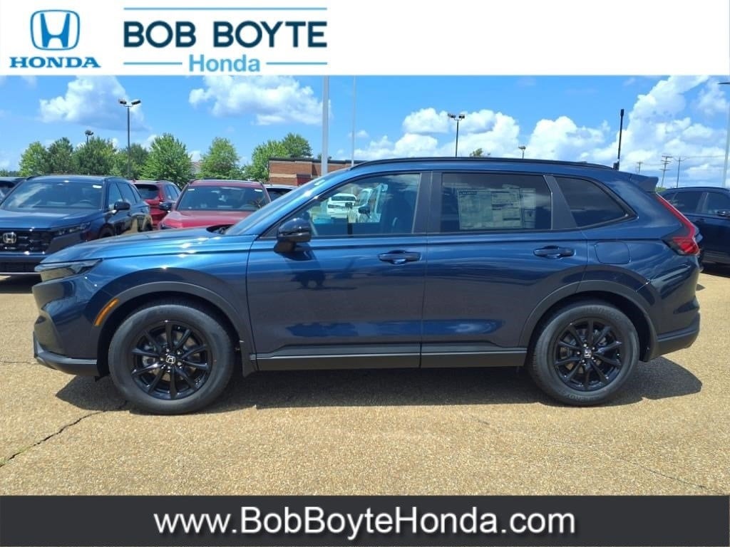 2026 Honda CR-V Hybrid Sport Canyon River Blue Metallic FWD 2.0L I4 DOHC 16V eCVT Bring Us All Offers On This Vehicle, Honda Dealer Serving Jackson MS, Financing Is Available For Everyone, 2.0L I4 DOHC 16V, 6 Speakers, Adaptive Cruise Control: Adaptive Cruise Control (ACC) with Low-Speed Follow, Alloy wheels, Apple CarPlay/Android Auto, Auto High-beam Headlights, Automatic temperature control, Blind Spot Information (BSI) System warning, Brake assist, Delay-off headlights, Electronic Stability Control, Exterior Parking Camera Rear, Four wheel independent suspension, Front Bucket Seats, Front dual zone A/C, Fully automatic headlights, Heated Front Bucket Seats, Heated front seats, Illuminated entry, Leather Shift Knob, Leather steering wheel, Occupant sensing airbag, Overhead airbag, Panic alarm, Power driver seat, Power moonroof, Power steering, Power windows, Radio data system, Radio: 240-Watt AM/FM Audio System, Rear window wiper, Remote keyless entry, Security system, Speed control, Speed-sensing steering, Speed-Sensitive Wipers, Spoiler, Steering wheel mounted audio controls, Traction control, Variably intermittent wipers, Wheels: 18" Berlina Black. 43/36 City/Highway MPG