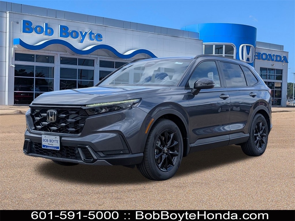 2026 Honda CR-V Hybrid Sport-L Meteorite Gray Metallic FWD 2.0L I4 DOHC 16V eCVT Bring Us All Offers On This Vehicle, Honda Dealer Serving Jackson MS, Financing Is Available For Everyone, 2.0L I4 DOHC 16V, Meteorite Gray Metallic, 8 Speakers, Adaptive Cruise Control: Adaptive Cruise Control (ACC) with Low-Speed Follow, Alloy wheels, Apple CarPlay/Android Auto, Auto High-beam Headlights, Automatic temperature control, Blind Spot Information (BSI) System warning, Brake assist, Delay-off headlights, Dual front impact airbags, Dual front side impact airbags, Electronic Stability Control, Exterior Parking Camera Rear, Four wheel independent suspension, Front dual zone A/C, Fully automatic headlights, Illuminated entry, Knee airbag, Leather Shift Knob, Leather steering wheel, Memory seat, Occupant sensing airbag, Overhead airbag, Panic alarm, Power driver seat, Power Liftgate, Power moonroof, Power steering, Power windows, Radio data system, Radio: 320-Watt AM/FM Audio System, Rear side impact airbag, Rear window wiper, Security system, Speed control, Speed-sensing steering, Speed-Sensitive Wipers, Spoiler, Steering wheel mounted audio controls, Traction control, Variably intermittent wipers, Wheels: 18" Berlina Black. 43/36 City/Highway MPG
