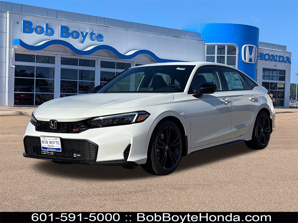 2026 Honda Civic Si Platinum White Pearl FWD 1.5L I4 DOHC 16V 6-Speed Manual Bring Us All Offers On This Vehicle, Honda Dealer Serving Jackson MS, Financing Is Available For Everyone, 12 Speakers, Alloy wheels, AM/FM radio, Apple CarPlay/Android Auto, Auto High-beam Headlights, Automatic temperature control, Blind Spot Information (BSI) System warning, Brake assist, Cloth Seating Surfaces, Delay-off headlights, Dual front impact airbags, Dual front side impact airbags, Electronic Stability Control, Exterior Parking Camera Rear, Four wheel independent suspension, Front Bucket Seats, Front dual zone A/C, Fully automatic headlights, Heated Front Bucket Seats, Heated front seats, Illuminated entry, Knee airbag, Leather Shift Knob, Leather steering wheel, Navigation system: Google Maps, Occupant sensing airbag, Overhead airbag, Panic alarm, Power moonroof, Power steering, Power windows, Radio data system, Radio: BOSE Premium Sound System, Rear side impact airbag, Remote keyless entry, Security system, Speed control, Speed-sensing steering, Spoiler, Steering wheel mounted audio controls, Traction control, Variably intermittent wipers, Wheels: 18" Matte Black Alloy. 27/37 City/Highway MPG